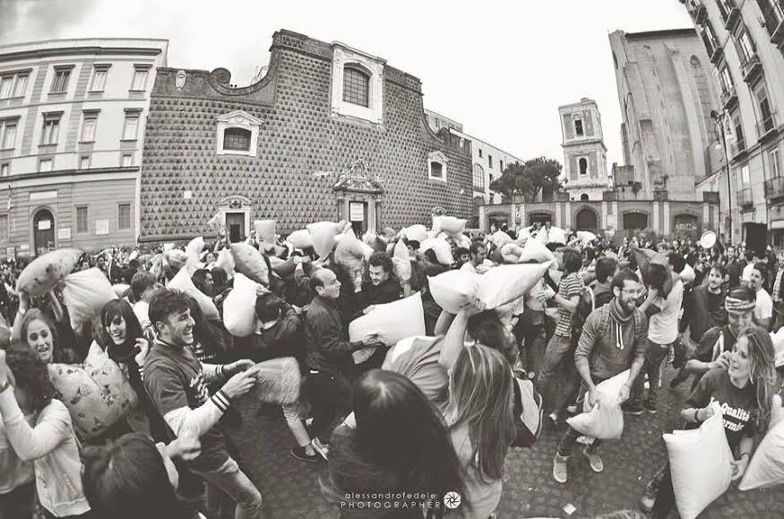 NAPOLI- Una “morbida” battaglia per combattere lo stress e le mille ansie della vita quotidiana. Succede a Napoli, dove il prossimo 14 novembre sbarcherà l’ International Pillow Fight 2015, letteralmente “lotta coi cuiscini”; l’appuntamento è a piazza del Gesù Nuovo alle ore 15. Il particolare flashmob, giunto alla sua seconda edizione, nasce da un’idea dei ragazzi di Erasmusland, consolidata associazione che fornisce agli studenti stranieri aiuto per ambientarsi e vivere al meglio la propria esperienza nel capoluogo partenopeo. Dopo il grande successo ottenuto con l’esoridio dell’anno scorso, il Pillow Fight è pronto a riproporsi ancora più in grande, con già oltre mille adesioni già arrivate sulla pagina Facebook dell’evento.